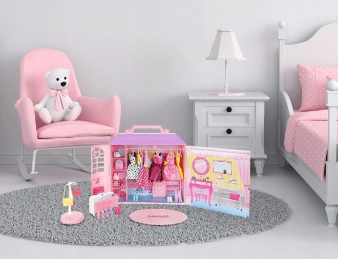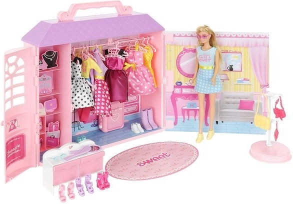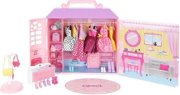 - Multă distracție – Casa de păpuși cu haine include numeroase elemente diverse, oferind copilului oportunități variate de joacă. Păpușa poate fi îmbrăcată, coafată și se pot juca scene inventate.
