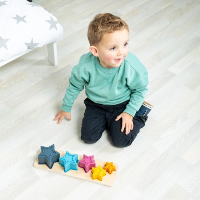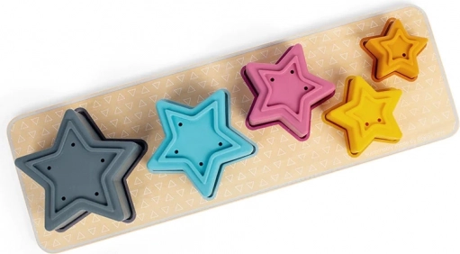 Descoperă puzzle-ul de inserare cu stele din combinație de lemn FSC și silicon, care dezvoltă la copii motricitatea fină, recunoașterea culorilor și dimensiunilor și, în plus, poate fi folosit și în cadă datorită efectului de fântână arteziană al steluțelor cu orificii.