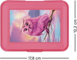 Bufnița în culoare roz este frumos reprezentată pe cutie, făcând fiecare masă o distracție.