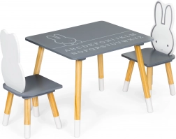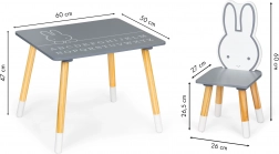 Masa și scaunele Ecotoys pentru copii este o alegere excelentă pentru toți micii artiști și exploratori. Masa cu motiv iepurașului oferă nu doar un loc pentru desen și joacă, dar și pentru învățarea alfabetului. Datorită designului scandinav simplu, se potrivește de minune în orice cameră sau zonă de joacă a copiilor.