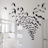 Setul conține 3 lilieci cu anverguri ale aripilor de 47, 37 și 31 cm, care oferă interiorului tău un efect vizual „wow”. Finisajul negru lucios și modelarea 3D permit realizarea unor instalații dramatice pe perete, fereastră sau uși.