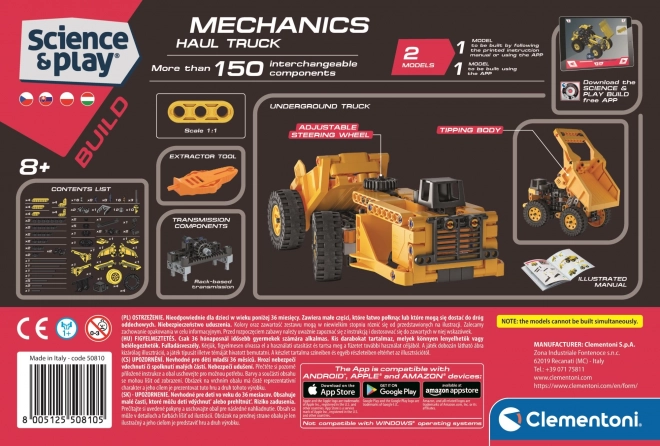 Descoperă drumul distractiv către gândirea tehnică cu laboratorul mecanic Clementoni. Setul permite construirea unor utilaje de minierit realiste, cu benă funcțională, angrenaje și roți mari – ideal pentru explorarea principiilor mișcării, transmiterii forței și construcției.