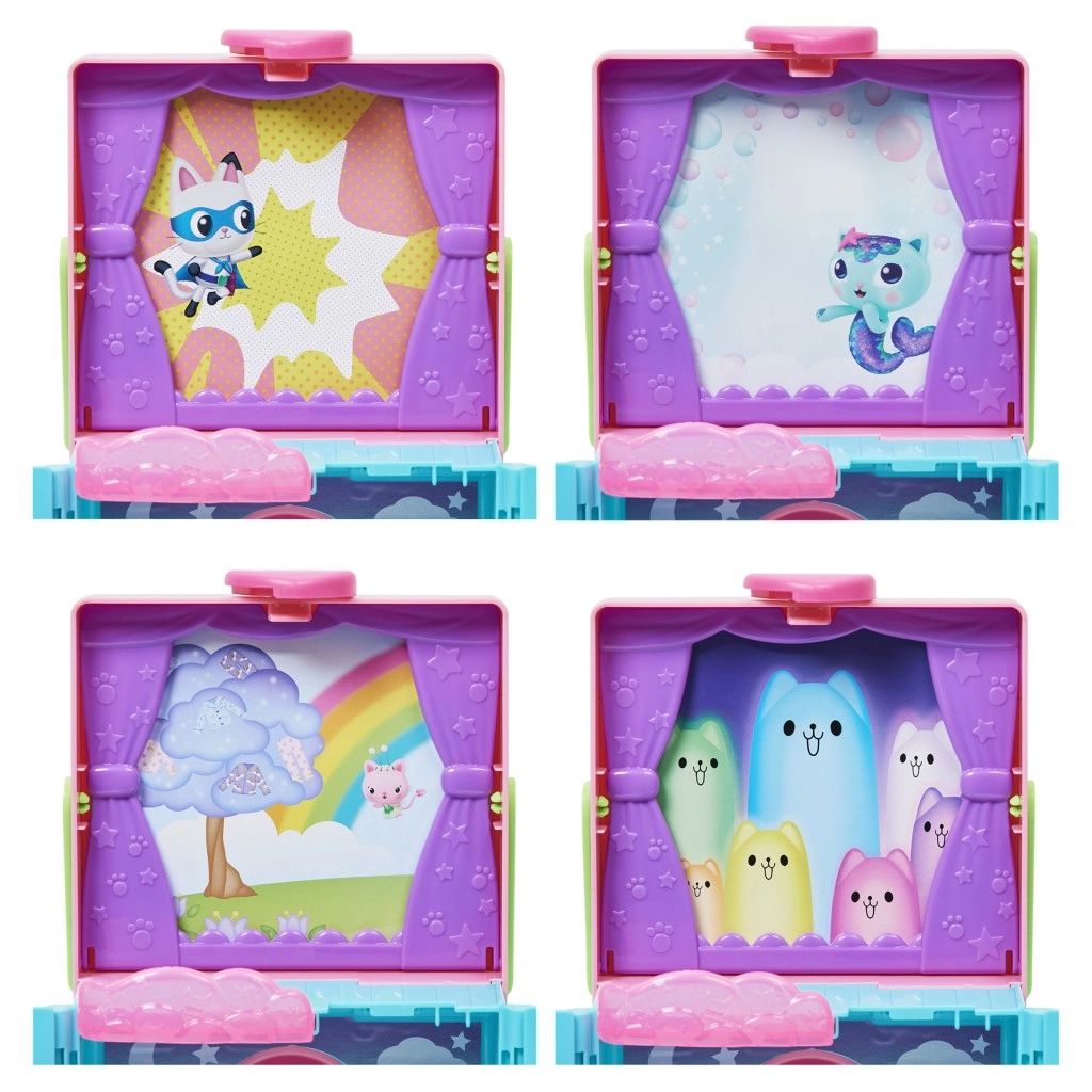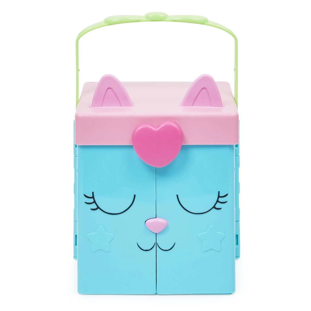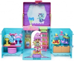 Setul stimulează creativitatea și imaginația copiilor de la 3 ani și este compatibil cu casa Gabby’s Purrfect Dollhouse pentru joacă extinsă. Geanta „pisicuță” compactă servește ca organizator de depozitare și scenă portabilă pentru joacă oriunde.