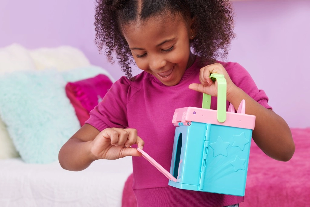 Urcă pe scara de frânghie în studioul foto, alege unul dintre cele patru fundaluri, montează trepiedul cu aparat și creează scena perfectă. Nu lipsește nici cutiuța surpriză; după scanarea codului QR în aplicația gratuită Căsuța magică a lui Gabby (iOS/Android) deblochezi o recompensă digitală specială.