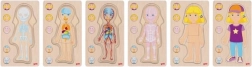 Acest puzzle arată corpul uman în cinci straturi, fiecare strat detaliind diferite sisteme ale corpului de la oase, la mușchi, până la organele interne.
