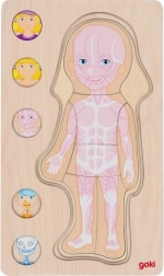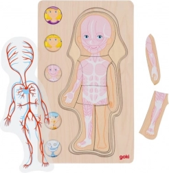 Doriți să vă bucurați copilul cu ceva special? Puzzle-ul educativ din lemn de la Goki este alegerea ideală pentru micii exploratori. Această jucărie nu doar stimulează curiozitatea, ci oferă și o modalitate interactivă de a se familiariza cu anatomia corpului uman. Puzzle-ul este detaliat și cele cinci straturi ale sale dezvăluie misterele scheletului, mușchilor și organelor.