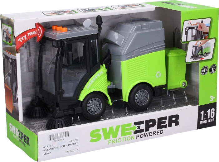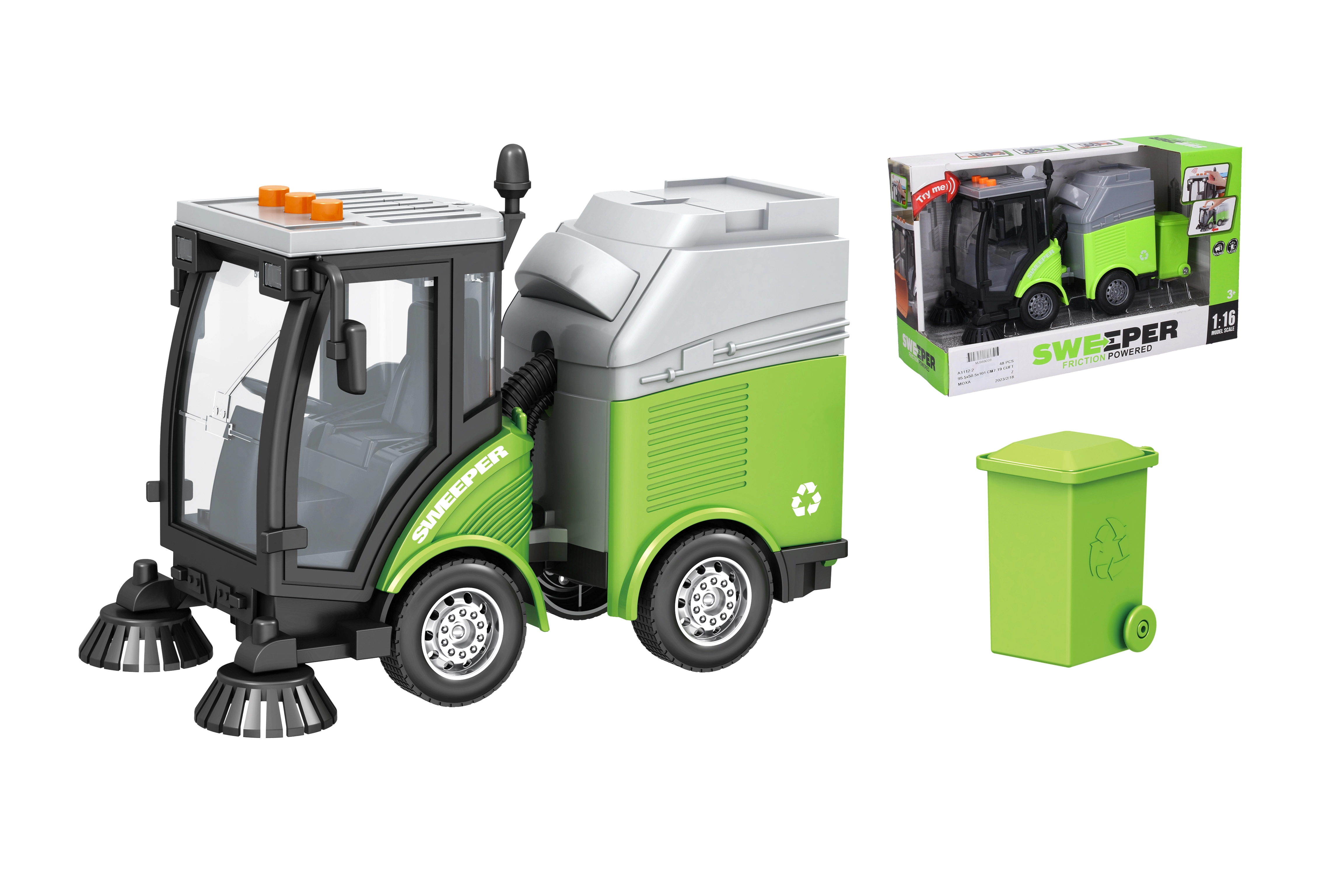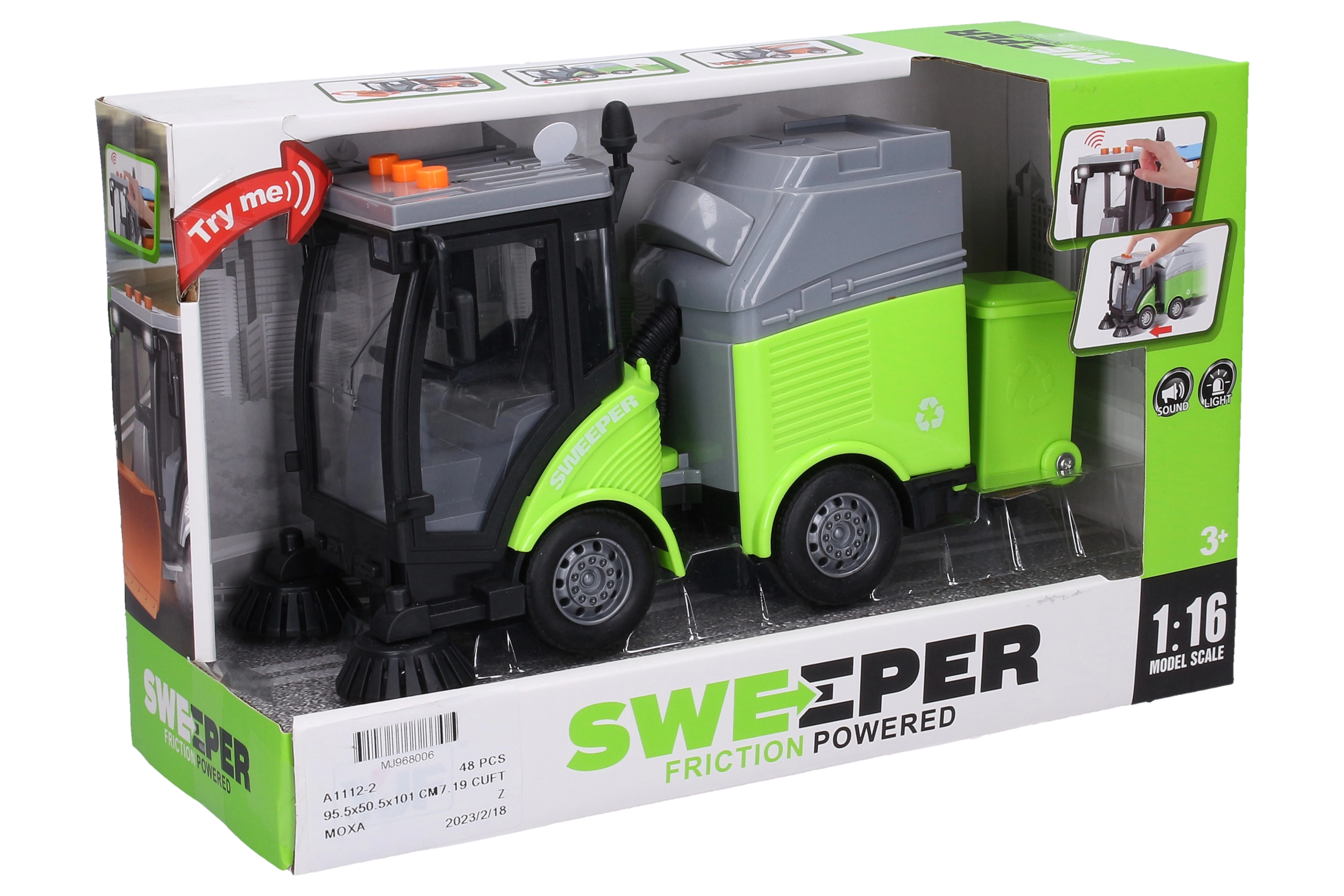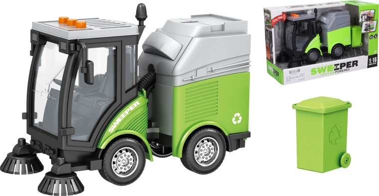 Cei mici vor adora mașina de curățenie cu pubelă, redată cu multe detalii, care oferă o experiență realistă a traficului urban. Datorită mecanismului cu inerție, este suficient să împingi puțin mașinuța și aceasta va porni singură înainte. Butoanele de pe cabină activează efecte ce imită fidel un vehicul real: pornirea motorului, claxonul și sunetul de marșarier, însoțite de lumini.