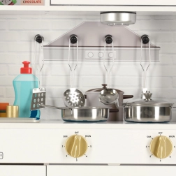Bucătăria din lemn pentru copii este o jucărie minunată care încurajează creativitatea și învățarea prin joc. Concepută cu o atenție deosebită la detalii, această bucătărie include toate elementele necesare pentru a simula experiența de gătit reală.