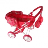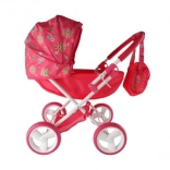 Acest cărucior de copii stilat este ușor și stabil, făcându-l soluția ideală pentru fiecare joc. Este realizat dintr-un cadru metalic de calitate și oferă o manevrare simplă datorită roților mari din plastic. Nu doar că are capotină rabatabilă, dar include și o geantă pe mâner pentru toate lucrurile necesare micii mămici. Sub cărucior se află spațiu pentru alte necesități. Pentru depozitare facilă, căruciorul poate fi ușor pliat.