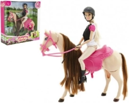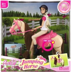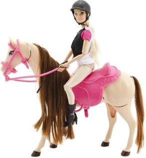 - **Păpușa** vine echipată cu haine de călărie și o cască de protecție.
