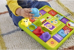 Prezentăm jocul interactiv Fisher-Price Învață și Râzi! Primul joc 123, care combină distracția cu învățarea. Această jucărie sub formă de joc de masă conține trei puncte active care activează efectele de lumină și sunet, cântece și fraze educative.