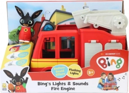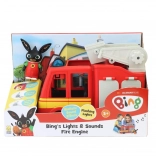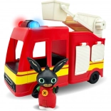 Pachetul include adorabila figurină Bing, care poate fi așezată la intervenție. Mașina are roți care se rotesc liber și o scară cu platformă rabatabilă, permițând copiilor să exerseze salvarea și coordonarea mișcărilor.