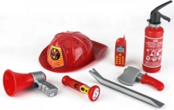 Descoperiți setul complet de pompieri pentru micii eroi, care oferă tot ce este necesar pentru jocuri de salvare. Setul include 7 piese de echipament, printre care cască, extinctor, lanternă și megafon cu baterii, rângă, topor și telefon mobil. Ideal ca jucărie pentru copii de la 3 ani, susținând imaginația și jocurile de rol.