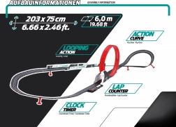Pista se montează ușor, este stabilă și, datorită construcției rezistente, face față și sesiunilor de curse intense. O alegere excelentă pentru primul pas în slot racing: dimensiuni compacte, control intuitiv și accesorii bogate pentru distracție imediată.
