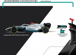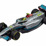 Mașina lui Lewis Hamilton, redată în detaliu, cu formă aerodinamică și logo-uri autentice, oferă senzația fidelă a curselor de F1 pe pista de acasă.