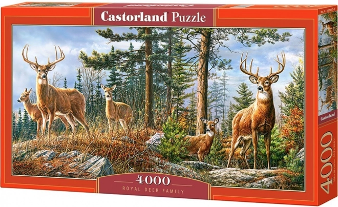 Descoperiți provocarea pentru pasionații exigenți de puzzle: un puzzle cu motivul familiei regale de cerbi din 4000 de piese. Realizare de calitate, valoare estetică ridicată și materiale sigure de la Castorland, pentru ore îndelungate de distracție și relaxare.