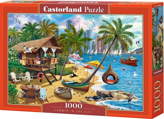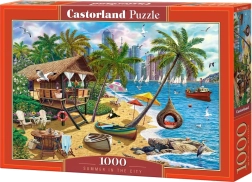 Descoperă farmecul atmosferei urbane de vară cu puzzle-ul CASTORLAND – Vară în oraș. Datorită celor 1000 de piese decupate cu precizie te vei bucura atât de provocare plăcută, cât și de relaxare. Culorile realiste și tiparul de calitate evidențiază fiecare detaliu al scenei.