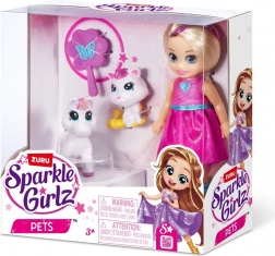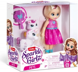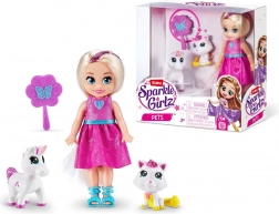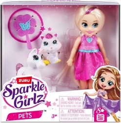Adorabila păpușă ZURU Sparkle Girlz cu animăluțe de companie oferă ore de joacă creativă și plină de imaginație. În pachet găsești o păpușă în rochie sclipitoare, un animăluț drăguț (unicorn, ponei sau pisoiaș) și un pieptene/oglindă stilată pentru pieptănat și îngrijirea părului. Un cadou grozav pentru copiii de la 3 ani în sus, care iubesc poveștile de basm și accesoriile drăgălașe.