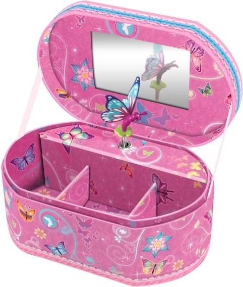 cutia muzicală ovală Pecoware. La deschidere, figurină începe să se rotească, iar când melodia se termină, este suficient să o învârtiți cu ajutorul unui mecanism special: