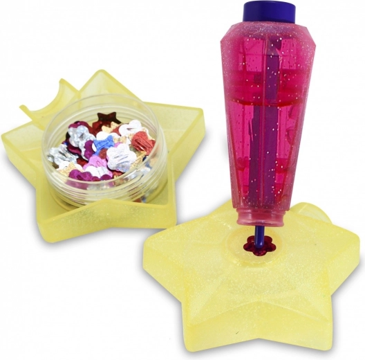 Bagheta stelară conține sute de ornamente strălucitoare, care pot fi folosite repetat pentru a decora jucăriile de pluș.