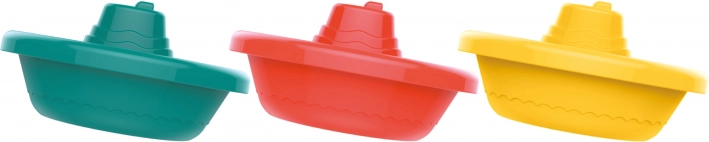 Set de trei bărcuțe colorate pentru baie, pentru o baie distractivă. Ușoare, plutesc la suprafață, ideale pentru mâinile copiilor. Culori: verde, portocaliu, galben.
