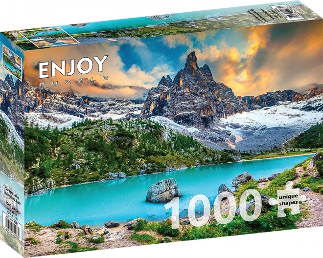 Bucurați-vă de priveliștea panoramică a lacului turcoaz Sorapis, înconjurat de vârfurile mărețe ale Dolomiților. Acest puzzle de 1000 de piese oferă o provocare plăcută, imprimare de calitate cu culori detaliate și decupaje precise pentru o asamblare lină, fără spații inutile.