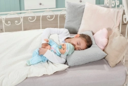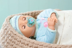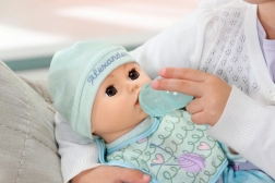 Când este timpul de somn, trebuie doar să îi dați suzeta și să îl priviți cum închide ochii maro papion. Alexander oftează și murmură când își primește biberonul. Cu un corp moale din material textil, păpușa este ideală pentru îmbrățișări și liniștire.