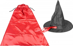 Un costum de vrăjitor stilat pentru copii, cu pălărie și pelerină, ideal pentru Halloween, carnaval și joaca de acasă. Setul include o pelerină ușoară care se leagă la gât și o pălărie clasică ascuțită. Sunt disponibile două variante de culoare – roșu și mov. Îmbrăcare ușoară, greutate redusă și aspect expresiv pentru un efect instant fără pregătiri complicate.