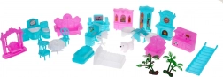 Parte a căsuței este un ansamblu de mobilier și accesorii, inclusiv șemineu, mobilier și elemente de grădină.