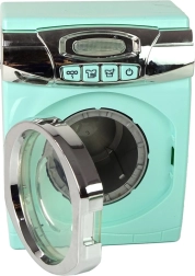 După introducerea a 3 × baterii AA, mașina de spălat emite sunete autentice și rotește tamburul, astfel încât copiii pot imita fidel spălatul și își pot crea propriile scenarii de gospodărie.