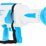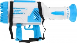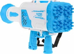 Pistolă distractivă de făcut bule, cu design futurist, creează sute de bule datorită capului cu 52 de orificii. Include acumulator reîncărcabil, două rezerve și o curea practică. Poate fi folosită și ca ventilator portabil – ideală pentru vară, grădină și petreceri pentru copii. Operare simplă, iluminare LED a bulelor și accesorii bogate pentru distracție maximă.