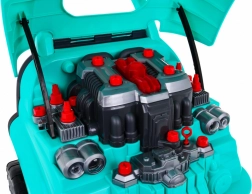 Sub capotă se află numeroase piese pentru montaj și demontaj: bujii, elice, curele și capace. Copiii pot exersa proceduri reale de service într-un mod sigur și ludic.