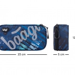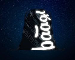 Penarul cu clapetă rabatabilă, buzunar cu fermoar și orar păstrează instrumentele de scris ordonate. Săculețul cu închidere prin șnur, purtat pe spate, are logo BAAGL luminos și este ideal pentru încălțăminte sau educație fizică.