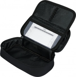 Penarul este robust, cu separator interior și buzunar cu fermoar, oferind suficient spațiu pentru rechizite de scris.