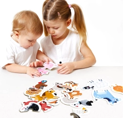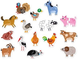 Învățarea prin joacă și asamblare susține răbdarea, concentrarea și dezvoltarea vocabularului. Copiii pot numi animăluțele, pot învăța culorile și părțile corpului, pot imita sunetele animalelor și pot inventa propriile povești despre viața la fermă. Piesele sunt mari și ușor de prins, astfel încât puzzle-ul este perfect ca prim set pentru copii de la 18 luni.
