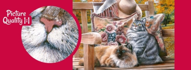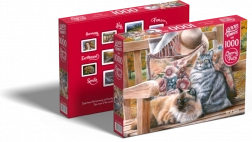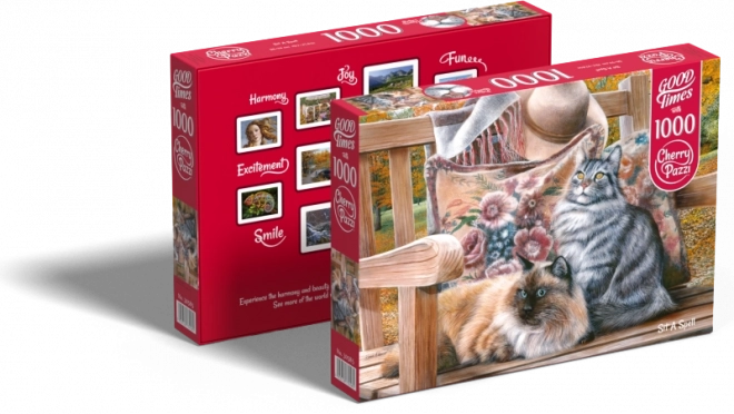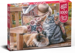 Bucurați-vă de relaxare cu puzzle-ul de calitate CHERRY PAZZI, cu motivul unei drăguțe întâlniri de pisici. Datorită celor 1000 de piese și dimensiunii după asamblare de aprox. 70 × 50 cm, este ideal pentru seri liniștite și ca dar original pentru iubitorii de pisici.