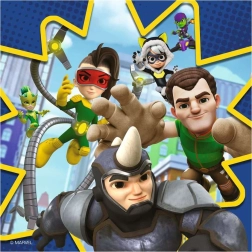 Acest set conține trei puzzle-uri de calitate cu personaje îndrăgite din poveștile Spidey. Datorită pieselor solide cu decupaje precise, asamblarea este ușoară și distractivă. Marca RAVENSBURGER este o garanție a calității înalte, a materialelor rezistente și a culorilor intense care durează.