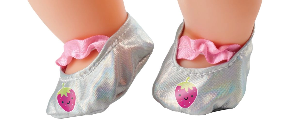 Set de 3 perechi de pantofi din material textil (1x cizme de ploaie, 2x balerini) în culori și țesături la modă. Ușor de folosit și de încălțat. Ideal pentru păpuși cu înălțimea de 30–43 cm.