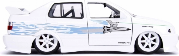 Trăiți emoția și stilul curselor din filme cu acest model de mașină 1995 Volkswagen Jetta. Modelul reprezintă un vehicul iconic din îndrăgita serie Fast & Furious, remarcându-se prin detalii bine lucrate și design sportiv. Cu caroserie albă și flăcări albastre pe laterale, fiecare detaliu a fost realizat cu grijă pentru autenticitate maximă. Ca piesă de colecție, este ideal pentru expunere pe raft sau ca parte a unei colecții mai mari de modele auto.