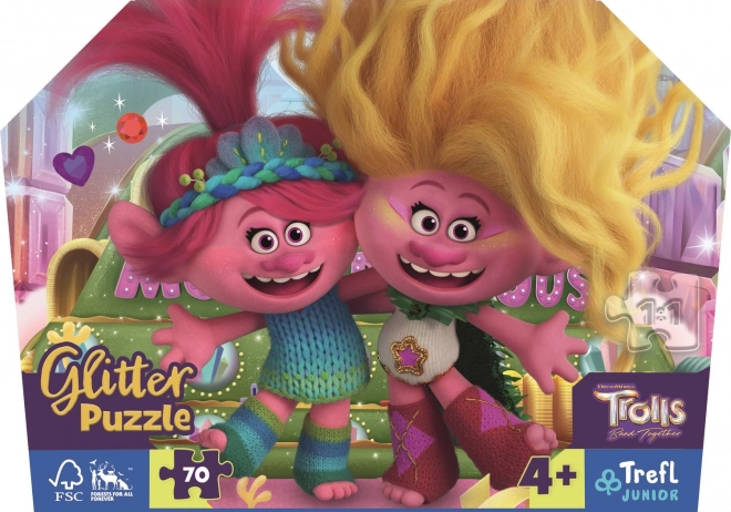 Puzzle-ul Trolli cu Brocart de la marca Trefl Junior este un puzzle uimitor de 70 de piese pentru mici iubitori de puzzle-uri și fani ai filmului Trolli. Datorită brocartului fin auriu, piesele individuale și ambalajul lor strălucesc minunat.