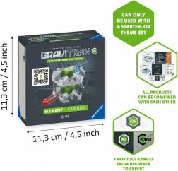 Accesoriul carusel adaugă dinamism și impredictibilitate pistelor tale GraviTrax PRO. Bilele pot intra pe carusel din mai multe direcții, se pot roti și pot continua către un alt nivel. Susține excelent creativitatea, gândirea logică și interesul pentru fizică și geometrie spațială.