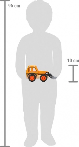 Acest buldoexcavator rezistent îmbină materialele naturale și designul ingenios pentru distracție constructivă. Cupa mobilă permite ridicarea și mutarea „încărcăturii”, în timp ce roțile cauciucate asigură o rulare silențioasă și lină pe podea. Datorită marginilor rotunjite și ferestrelor mari deschise, este ușor de apucat și controlat de copii.