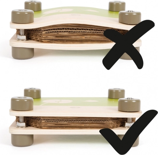 Patru șuruburi metalice cu piulițe oferă o presiune puternică și uniformă, pe care copiii o pot strânge singuri.