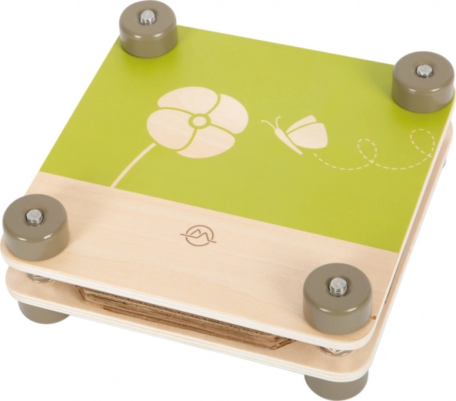 Această presă de flori din lemn de înaltă calitate din gama Discover este un instrument ideal pentru mici exploratori și iubitori de activități creative. Două panouri solide din lemn se strâng ușor cu patru șuruburi metalice cu piulițe, datorită cărora copiii obțin o presiune uniformă și o uscare perfectă a florilor, petalelor și ierburilor.