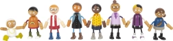 Descoperă lumea plină de povești cu familia flexibilă de păpuși din lemn. Două perechi de părinți, trei copii și un bebeluș în marsupiu, care poate fi atașat și altor figurine, oferă nenumărate scenarii de joc. Datorită combinației de lemn și textile, păpușile sunt robuste, bine finisate și plăcute la atingere.