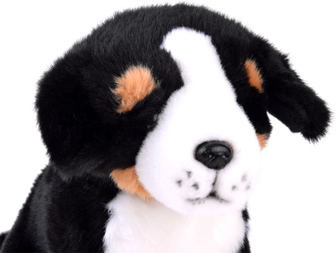 Această jucărie din pluș oferă un detaliu de execuție care imită fidel câinele Bernese Mountain real.