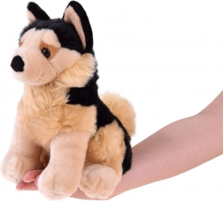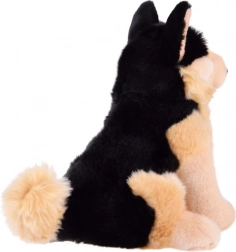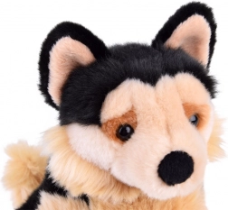 Acest ciobănesc german de pluș așezat, din gama eco friendly, este conceput cu accent pe detaliu. Proporțiile realiste, ochii expresivi și combinația de blăniță bej și neagră îl transformă într-un prieten grozav pentru micii iubitori de animale. Suprafața catifelată este plăcută la atingere și invită la alint.