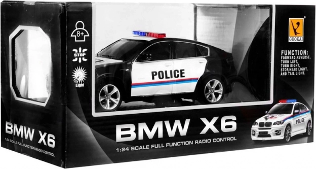 | Descriere | BMW X6 cu telecomandă POLICE la scară 1:24 27MHz (866-2404P) |