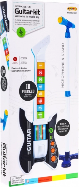 | Dimensiuni | - chitară aprox. 56 cm x 21 cm x 3 cm, - microfon pe stativ aprox. 80 cm x 20 cm, - ambalaj aprox. 56,5 cm x 25 cm x 6 cm. |
