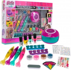 Descoperiți lumea magică a manichiurii cu acest set de manichiură fantastic! Setul sigur și distractiv include un uscător de unghii real, care nu doar că usucă unghiile, dar emite și sunete realiste. Centrul uscătorului este iluminat cu lămpi, ceea ce adaugă o notă magică întregii manichiuri. Nu uitați că aveți nevoie de 2 baterii AA 1,5V pentru uscător, care nu sunt incluse în pachet.